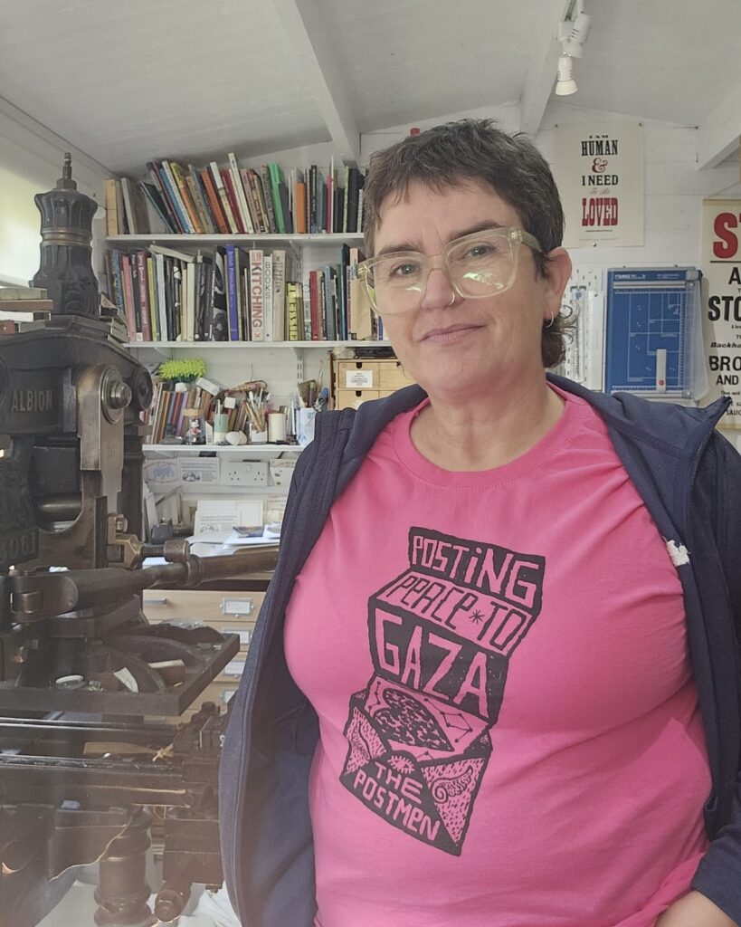 In the mid 1990s a friend and I screenprinted ‘Free Beth and Mandy Jordache’ t-shirts on my kitchen table to raise money for the local women’s refuge and since then I have been completely hooked on printmaking.