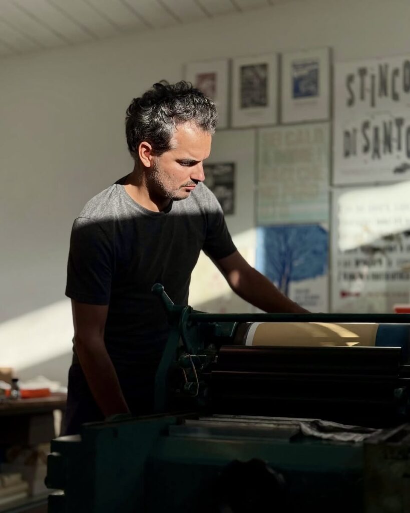 Matteo Totaro is the founder of Officina del giorno dopo, a letterpress workshop and research space established in 2017 in Monte Sant’Angelo, in the heart of the Gargano. His work moves between art, craft, and memory: every project is a dialogue between moveable type, ink, paper, and time.