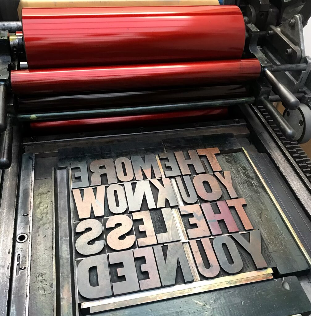 Each print uniquely captures the imperfections of the antique type and the power of the process that gave birth to each original print.